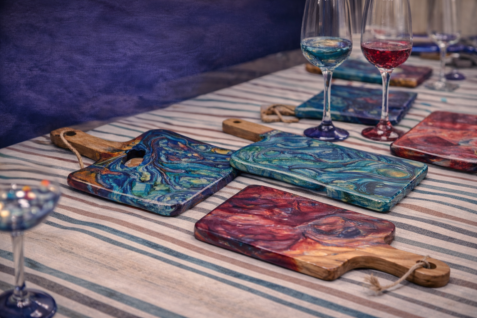 Join us for a fun, hands-on experience where you'll create one custom paint-pour charcuterie board and two hand-decorated wine glasses.